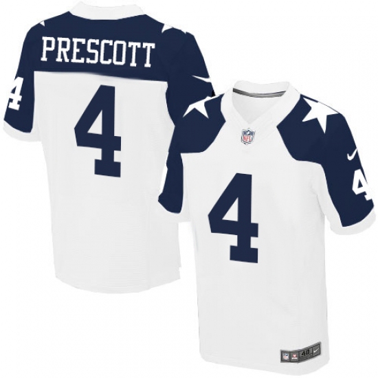 Men's Nike Dallas Cowboys #4 Dak Prescott Elite White Throwback Alternate NFL Jersey