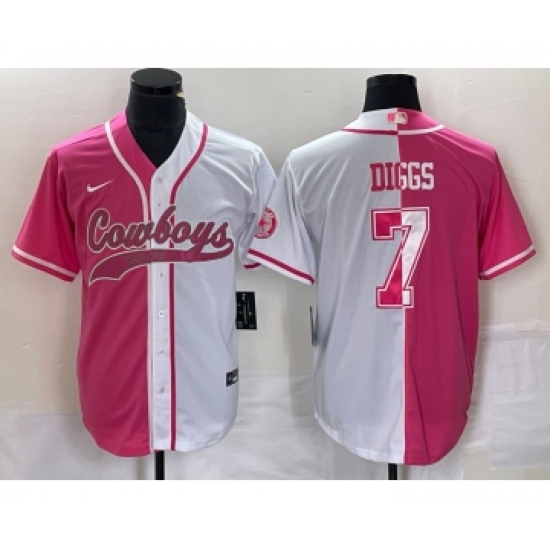 Men's Nike Dallas Cowboys #7 Trevon Diggs Pink White Two Tone Cool Base Stitched Baseball Jersey
