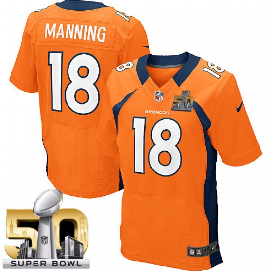 Men's Nike Denver Broncos #18 Peyton Manning Elite Orange Team Color Super Bowl 50 Bound NFL Jersey