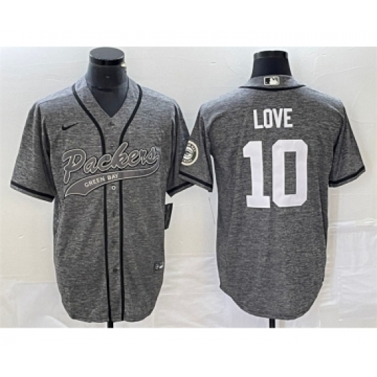 Men's Nike Green Bay Packers #10 Jordan Love Gray Cool Base Stitched Baseball Jersey