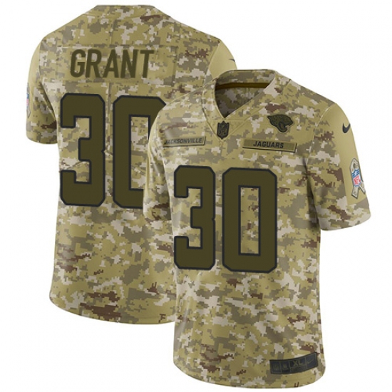 >Men's Nike Jacksonville Jaguars #30 Corey Grant Limited Camo 2018 Salute to Service NFL Jersey