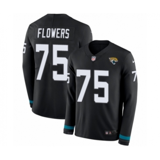 >Men's Nike Jacksonville Jaguars #75 Ereck Flowers Limited Black Therma Long Sleeve NFL Jersey