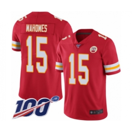 Men's Nike Kansas City Chiefs #15 Patrick Mahomes Red Team Color Vapor Untouchable Limited Player 100th Season NFL Jersey