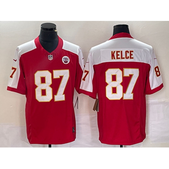 Men's Kansas City Chiefs #87 Travis Kelce Red White Split Vapor Limited 2021 Super Bowl LIV Stitched Jersey