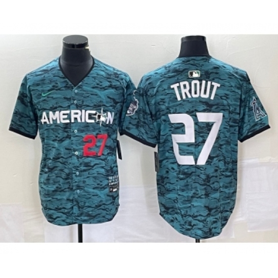 Men's Nike Los Angeles Angels #27 Mike Trout Number Teal 2023 All Star Cool Base Stitched Jersey