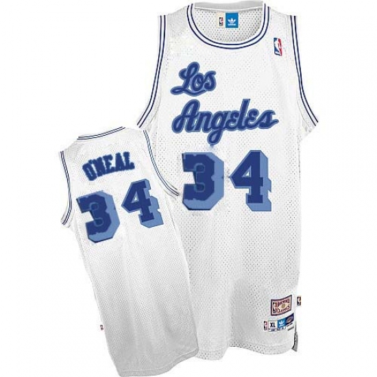 Men's Nike Los Angeles Lakers #34 Shaquille O'Neal Authentic White Throwback NBA Jersey