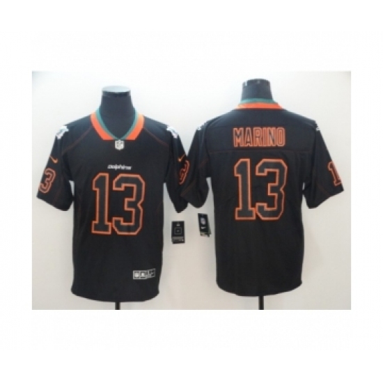 >Men's Nike Miami Dolphins #13 Dan Marino Lights Out Black Rush NFL Jersey
