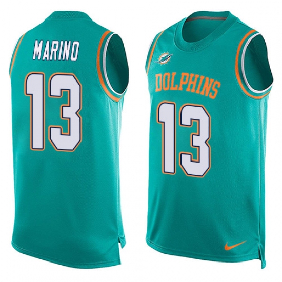 Men's Nike Miami Dolphins #13 Dan Marino Limited Aqua Green Player Name & Number Tank Top NFL Jersey