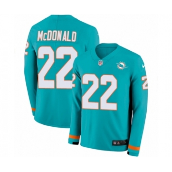 >Men's Nike Miami Dolphins #22 T.J. McDonald Limited Aqua Therma Long Sleeve NFL Jersey