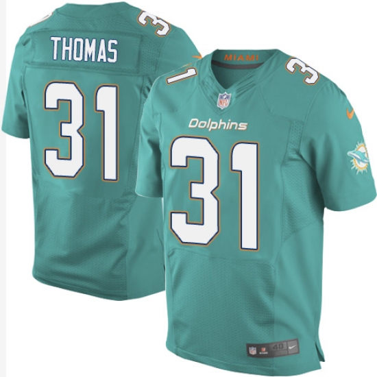 Men's Nike Miami Dolphins #31 Michael Thomas Elite Aqua Green Team Color NFL Jersey