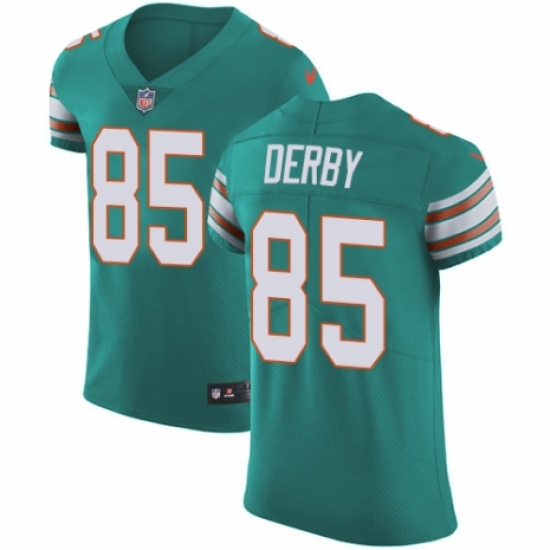 >Men's Nike Miami Dolphins #85 A.J. Derby Aqua Green Alternate Vapor Untouchable Elite Player NFL Jersey