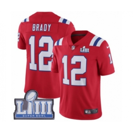 Men's Nike New England Patriots #12 Tom Brady Red Alternate Vapor Untouchable Limited Player Super Bowl LIII Bound NFL Jersey