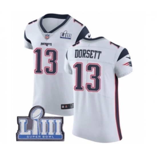 Men's Nike New England Patriots #13 Phillip Dorsett White Vapor Untouchable Elite Player Super Bowl LIII Bound NFL Jersey