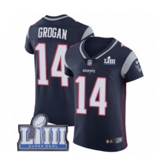 >Men's Nike New England Patriots #14 Steve Grogan Navy Blue Team Color Vapor Untouchable Elite Player Super Bowl LIII Bound NFL Jersey