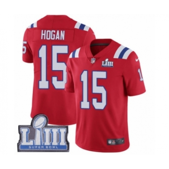 Men's Nike New England Patriots #15 Chris Hogan Red Alternate Vapor Untouchable Limited Player Super Bowl LIII Bound NFL Jersey