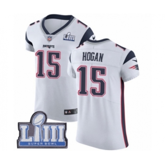 Men's Nike New England Patriots #15 Chris Hogan White Vapor Untouchable Elite Player Super Bowl LIII Bound NFL Jersey