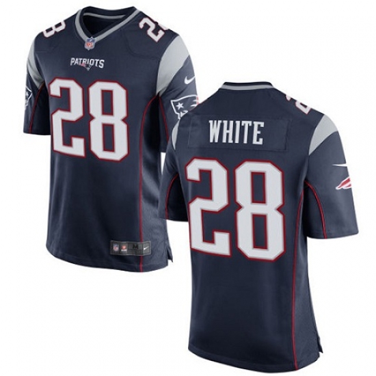 Men's Nike New England Patriots #28 James White Game Navy Blue Team Color NFL Jersey