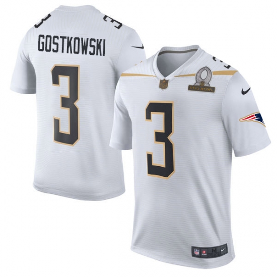 Home>NFL>New England Patriots>Stephen Gostkowski>Men's Nike New England Patriots #3 Stephen Gostkowski Elite White Team Rice 2016 Pro Bowl NFL Jersey