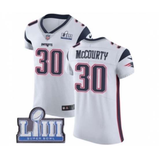 >Men's Nike New England Patriots #30 Jason McCourty White Vapor Untouchable Elite Player Super Bowl LIII Bound NFL Jersey