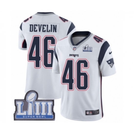 Men's Nike New England Patriots #46 James Develin White Vapor Untouchable Limited Player Super Bowl LIII Bound NFL Jersey
