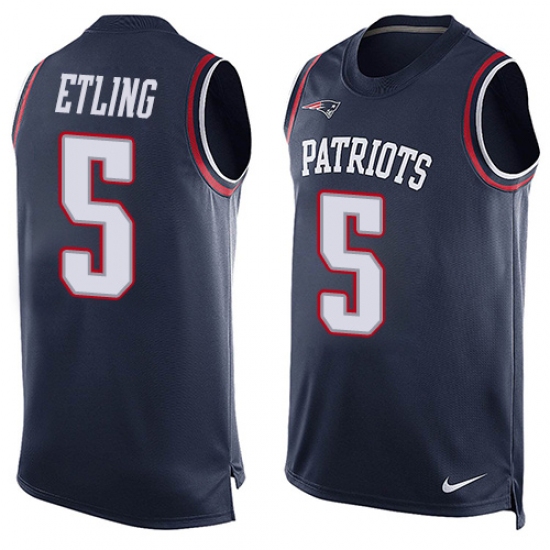 Men's Nike New England Patriots #5 Danny Etling Limited Navy Blue Player Name & Number Tank Top NFL Jersey