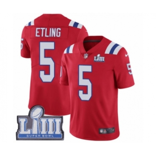 >Men's Nike New England Patriots #5 Danny Etling Red Alternate Vapor Untouchable Limited Player Super Bowl LIII Bound NFL Jersey