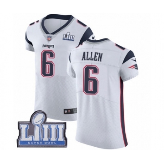Men's Nike New England Patriots #6 Ryan Allen White Vapor Untouchable Elite Player Super Bowl LIII Bound NFL Jersey
