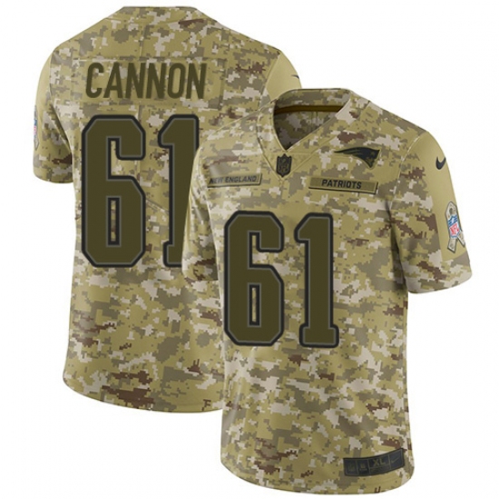 >Men's Nike New England Patriots #61 Marcus Cannon Limited Camo 2018 Salute to Service NFL Jersey