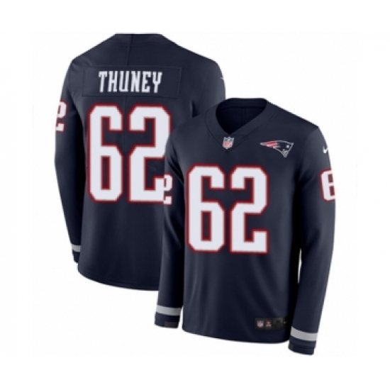 Men's Nike New England Patriots #62 Joe Thuney Limited Navy Blue Therma Long Sleeve NFL Jersey