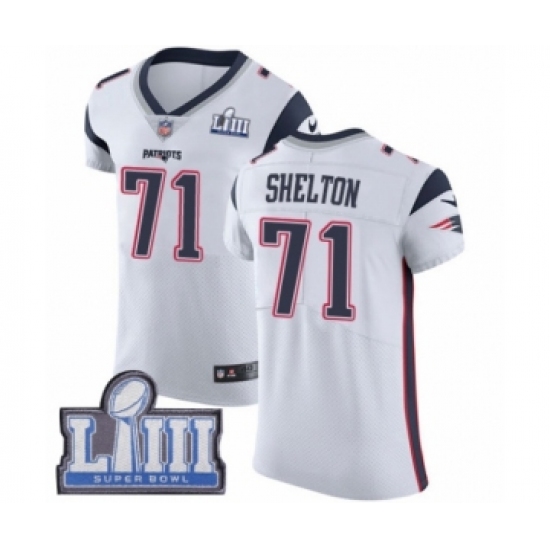Men's Nike New England Patriots #71 Danny Shelton White Vapor Untouchable Elite Player Super Bowl LIII Bound NFL Jersey