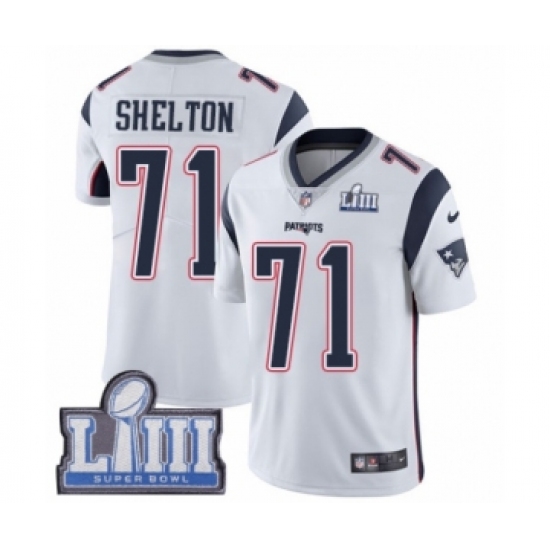 Men's Nike New England Patriots #71 Danny Shelton White Vapor Untouchable Limited Player Super Bowl LIII Bound NFL Jersey