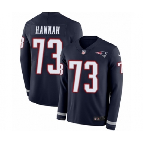 Men's Nike New England Patriots #73 John Hannah Limited Navy Blue Therma Long Sleeve NFL Jersey