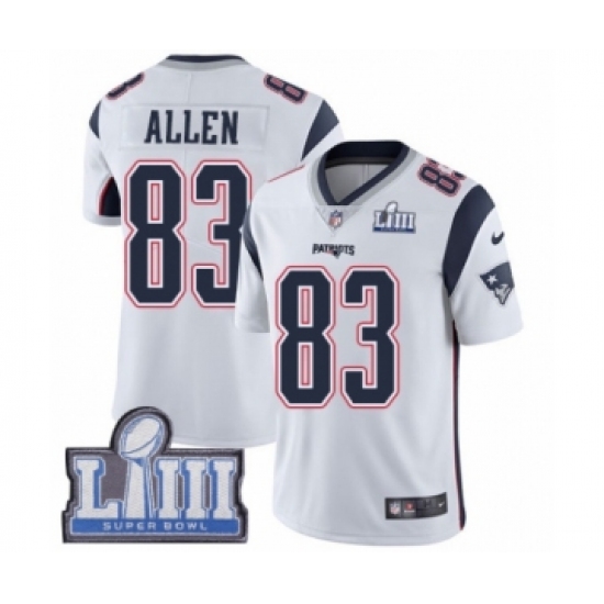 Men's Nike New England Patriots #83 Dwayne Allen White Vapor Untouchable Limited Player Super Bowl LIII Bound NFL Jersey