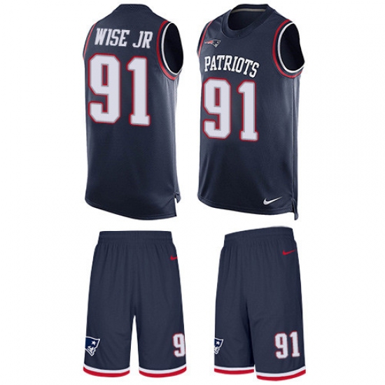 Men's Nike New England Patriots #91 Deatrich Wise Jr Limited Navy Blue Tank Top Suit NFL Jersey