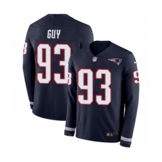 Men's Nike New England Patriots #93 Lawrence Guy Limited Navy Blue Therma Long Sleeve NFL Jersey