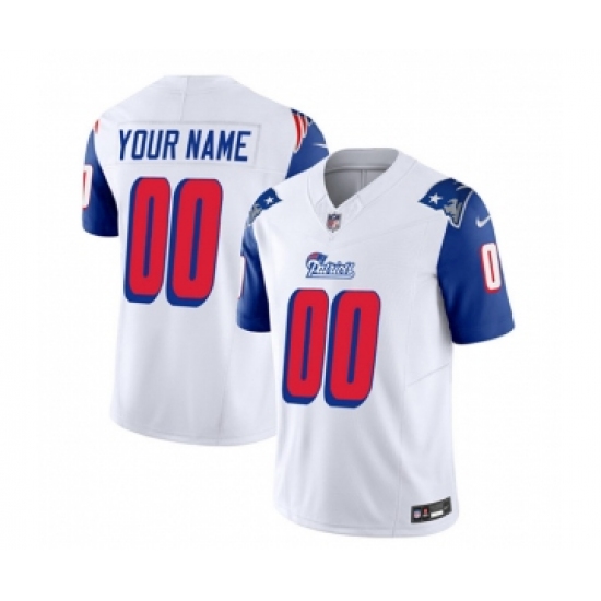 >Men's Nike New England Patriots Active Player Custom White Blue 2023 F.U.S.E. Throwback Limited Football Stitched Jersey