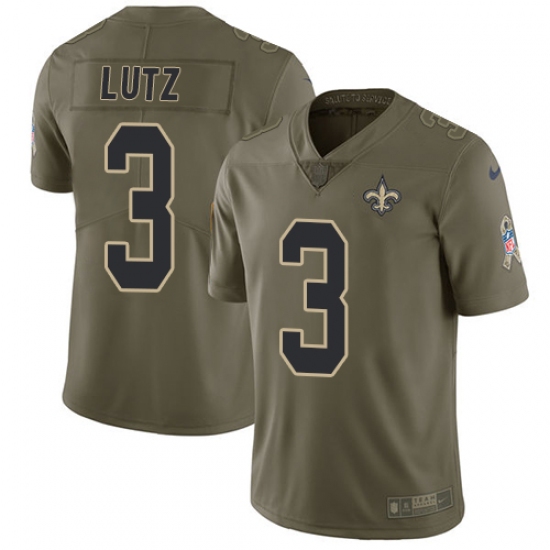Home>NFL>New Orleans Saints>Will Lutz>Men's Nike New Orleans Saints #3 Will Lutz Limited Olive 2017 Salute to Service NFL Jersey