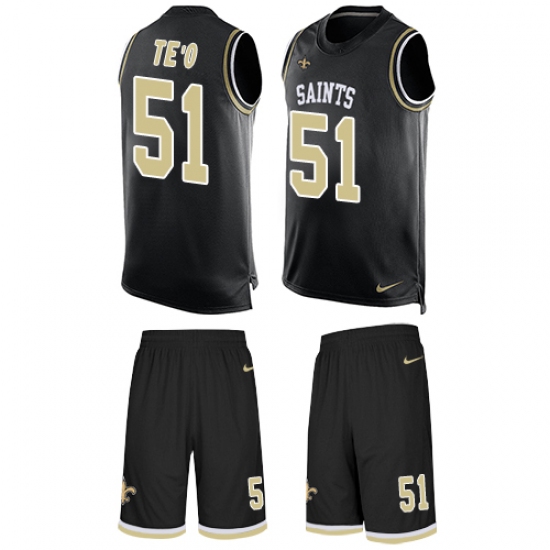 Men's Nike New Orleans Saints #51 Manti Te'o Limited Black Tank Top Suit NFL Jersey