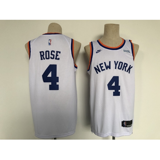 Men's Nike New York Knicks #4 Derrick Rose White Stitched Basketball Jersey