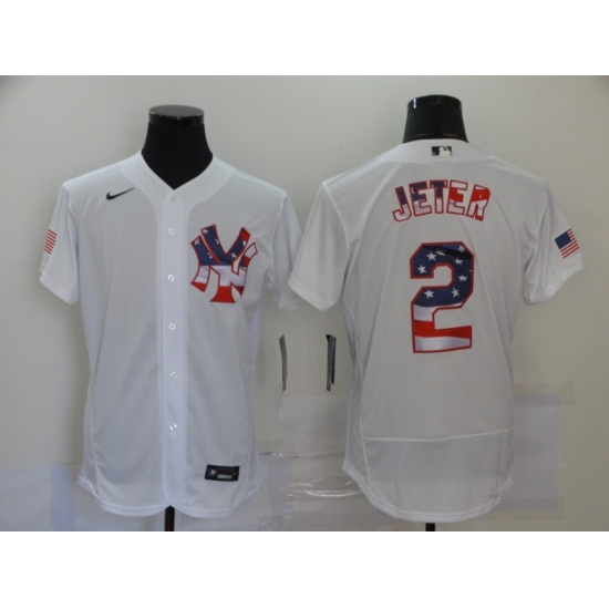 Men's Nike New York Yankees #2 Derek Jeter White 2020 Stars & Stripes 4th of July Jersey