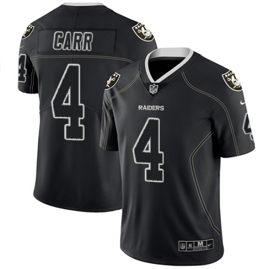 >Men's Nike Oakland Raiders #4 Derek Carr Limited Lights Out Black Rush NFL Jersey