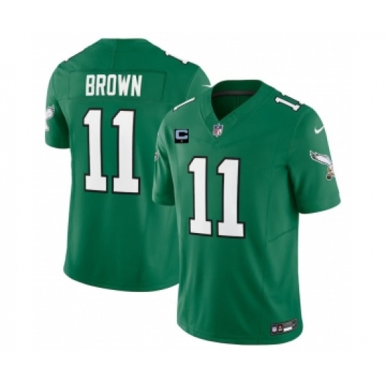 >Men's Nike Philadelphia Eagles #11 A. J. Brown Green 2023 F.U.S.E. 1-Star C Vapor Untouchable Limited Football Stitched Jersey