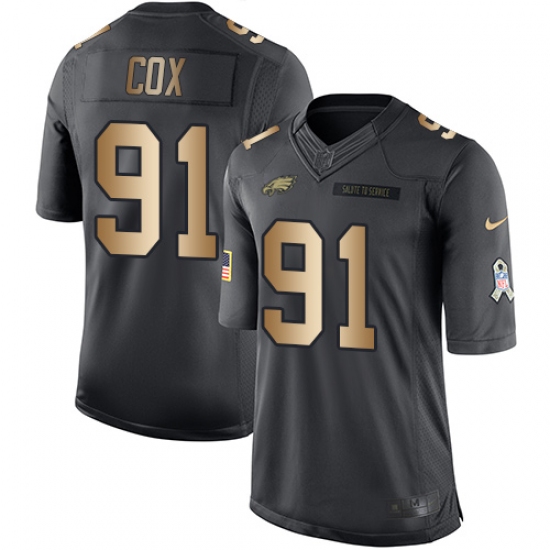 Home>NFL>Philadelphia Eagles>Fletcher Cox>Men's Nike Philadelphia Eagles #91 Fletcher Cox Limited Black/Gold Salute to Service NFL Jersey
