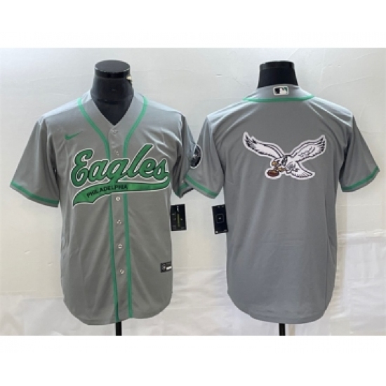 Men's Nike Philadelphia Eagles Gray Team Big Logo Cool Base Stitched Baseball Jersey