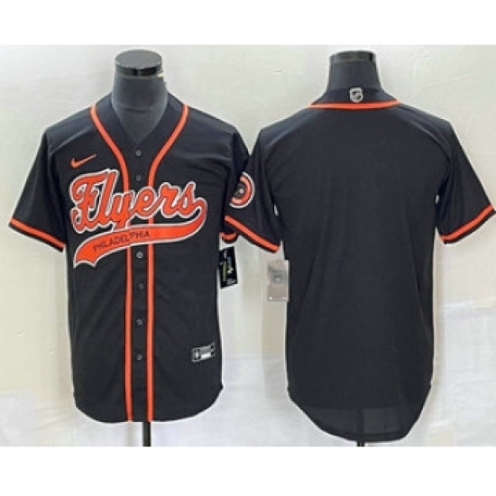 Men's Nike Philadelphia Flyers Black Team Big Logo Cool Base Stitched Baseball Jersey