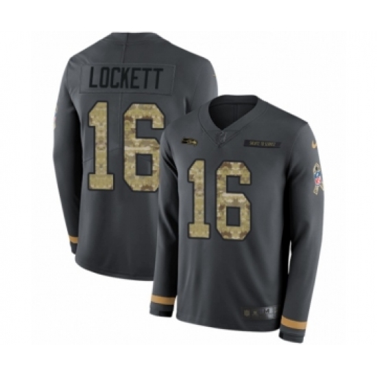 Men's Nike Seattle Seahawks #16 Tyler Lockett Limited Black Salute to Service Therma Long Sleeve NFL Jersey