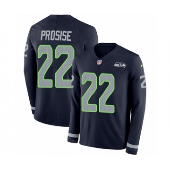 Men's Nike Seattle Seahawks #22 C. J. Prosise Limited Navy Blue Therma Long Sleeve NFL Jersey
