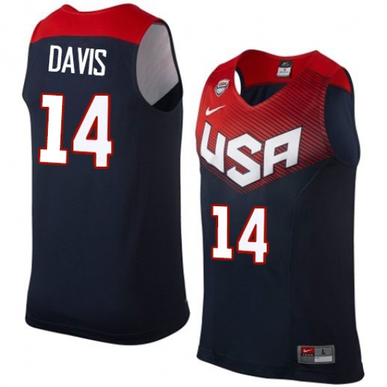 Men's Nike Team USA #14 Anthony Davis Authentic Navy Blue 2014 Dream Team Basketball Jersey