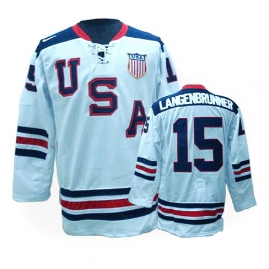 Men's Nike Team USA #15 Jamie Langenbrunner Authentic White 1960 Throwback Olympic Hockey Jersey