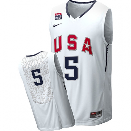 Men's Nike Team USA #5 Kevin Durant Swingman White 2010 World Basketball Tournament Jersey